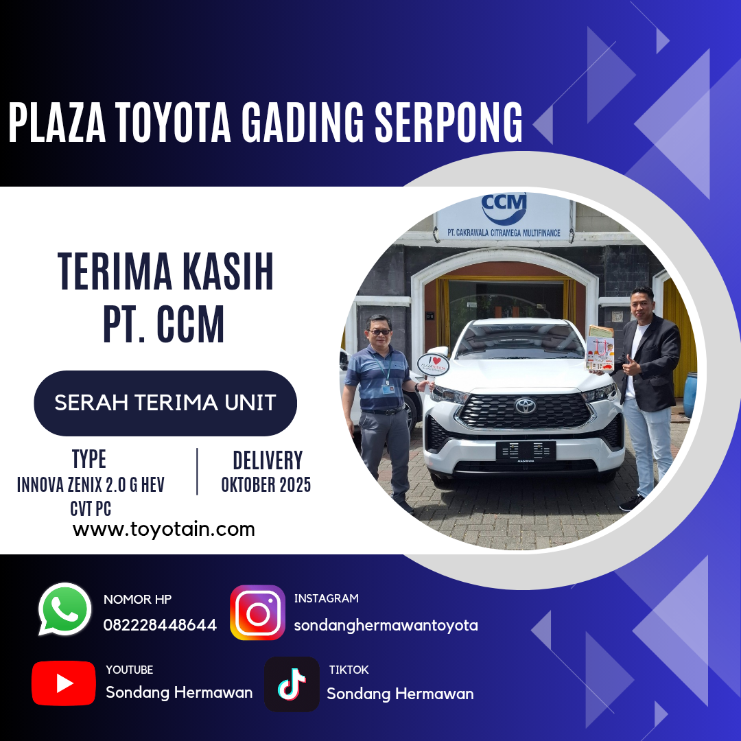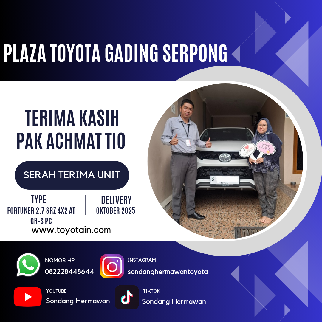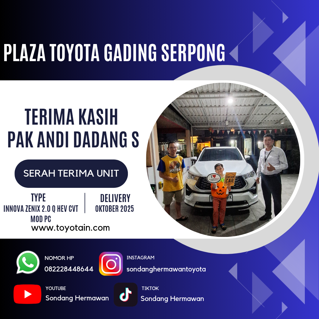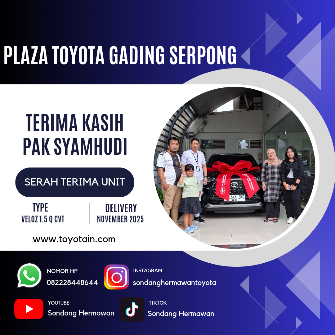 Perkenalkan, saya SONDANG HERMAWAN, Sales Executive Plaza Toyota Gading Serpong. Terima kasih atas waktu dan kunjungan Anda ke website saya.